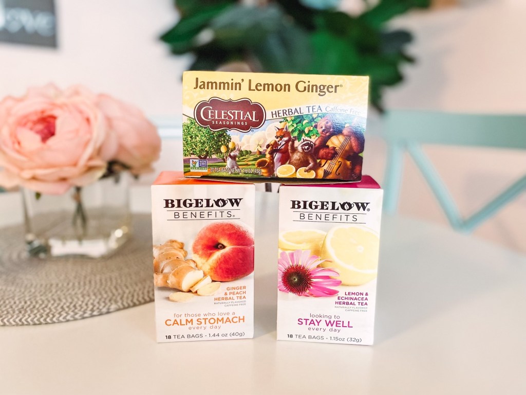 - Drink LOTS of Water and other fluids. My favorite Teas : “STAY WELL” Tea and “CALM STOMACH” both by the brand Bigelow (sold at Mariano’s) and “Jammin Lemon Ginger” (sold at Jewel Osco) **Make Ginger your best friend. It is a wonderful anti-viral and amazing for the stomach. Any chamomile tea with lemon balm (chamomile is great for the stomach and has so many benefits along with relaxation etc.; lemon balm is also great for relaxation and a big antiviral as well) I drink this one before bedtime.